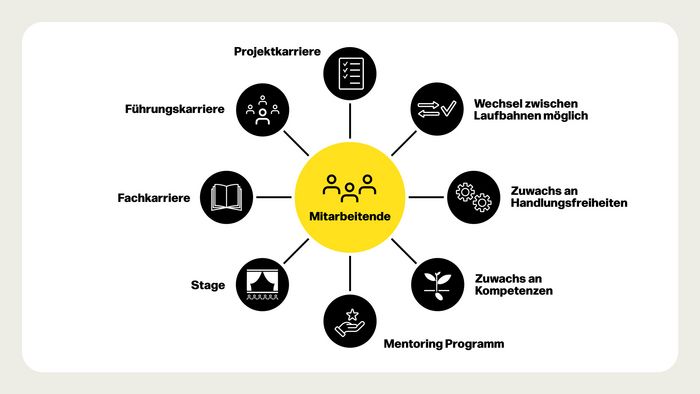 Wir fördern und begleiten unsere Mitarbeitenden mit Leidenschaft und Weitblick auf ihrem individuellen Weg.