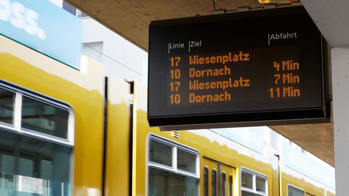 Wenn Sie vorne bei der ersten Tür des Fahrzeuges in das Tram oder den Bus einsteigen, kann Ihnen die Fahrerin oder der Fahrer die nötige Linieninformation geben, die Tür länger geöffnet lassen oder Ihnen bei Bedarf helfen. Die Haltestellen und die vorderste Tür sind taktil markiert. Die zentralen Haltestellen sowie alle Fahrzeuge sind mit Akustikmodulen ausgerüstet, um im Störfall direkt informieren zu können. In den Fahrzeugen erfolgt zudem die Ansage der Haltestellen automatisch.