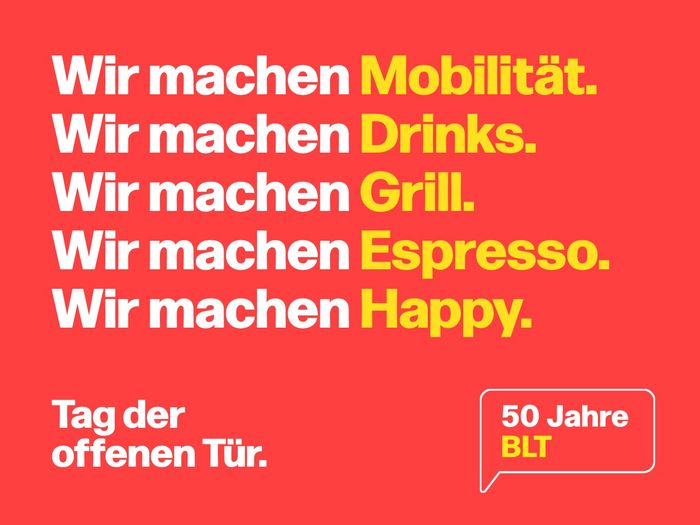 Wir feiern gemeinsam das 50-jährige Jubiläum der BLT, geben Einblicke hinter die Kulissen und bieten ein spannendes Programm für Gross und Klein.