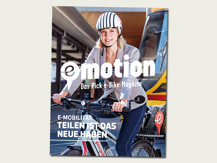 300 E-Bikes und 60 E-Scooter von Pick-e-Bike sind auf unseren Radwegen und Strassen unterÂwegs. Fahrzeuge, die Sie jederzeit einfach per Smartphone mieten können. BLT, Primeo Energie und die Basler Kantonalbank haben das neuartige Konzept vor einem Jahr lanciert. Lesen Sie im neuen Pick-e-Bike-Magazin wie Megatrends wie Elektromobilität, Digitalisierung und Sharing Economy eine nachhaltige Mobilität ermöglichen, lernen Sie das Angebot von Pick-e-Bike kennen und werfen Sie einen Blick hinter die Kulissen.