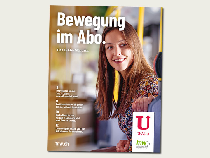 Unbegrenzt, unschlagbar, unÂerÂsetzÂlich, unternehmungslustig. Es gibt Vieles, wofĂĽr das «U» im U-Abo – neben Umweltschutz natĂĽrlich – noch stehen könnte. Das U-Abo bietet seit ĂĽber 35 Jahren mehr als freie Fahrt in der Nordwestschweiz – und dies ohne zeitliche und räumÂliche EinÂschränkung. Einfache Erhältlichkeit, ein unkompliziertes, gĂĽnstiges Tarifsystem und ĂĽber 750 Kilometer Strecke an fast jeden Ort in der Region. Das macht das U-Abo Monat fĂĽr Monat fĂĽr ĂĽber 170’000 Menschen zum unersetzlichen Begleiter zur Arbeit oder in der Freizeit. Lesen Sie mehr ĂĽber das U-Abo im neuen U-Abo Magazin.
